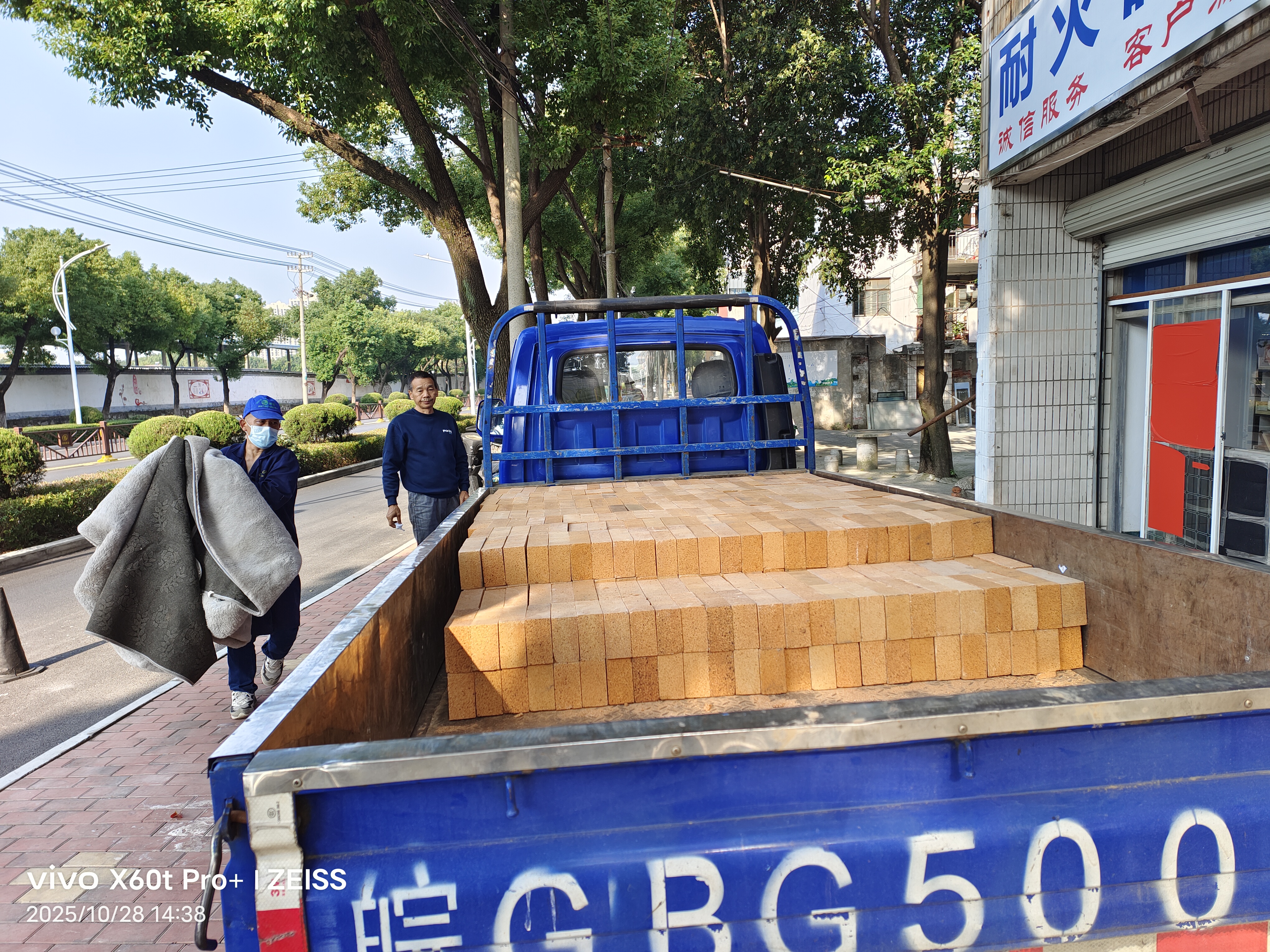 10月28日午饭后,铜陵金钟物资接到市开发区一企业电话:下午4点前送1500块耐火砖及6梱保温布。电话就是命令,立即安排车辆分两趟送货。因为企业车间面积特别大,好几道工序位置都要堆放耐火砖,所以还要带着小推车分区域一小车一小车地卸货,占用很多时间,但我们宁愿自己累一些,也要将货物码稳码好,以便于车间师傅们维修使用。