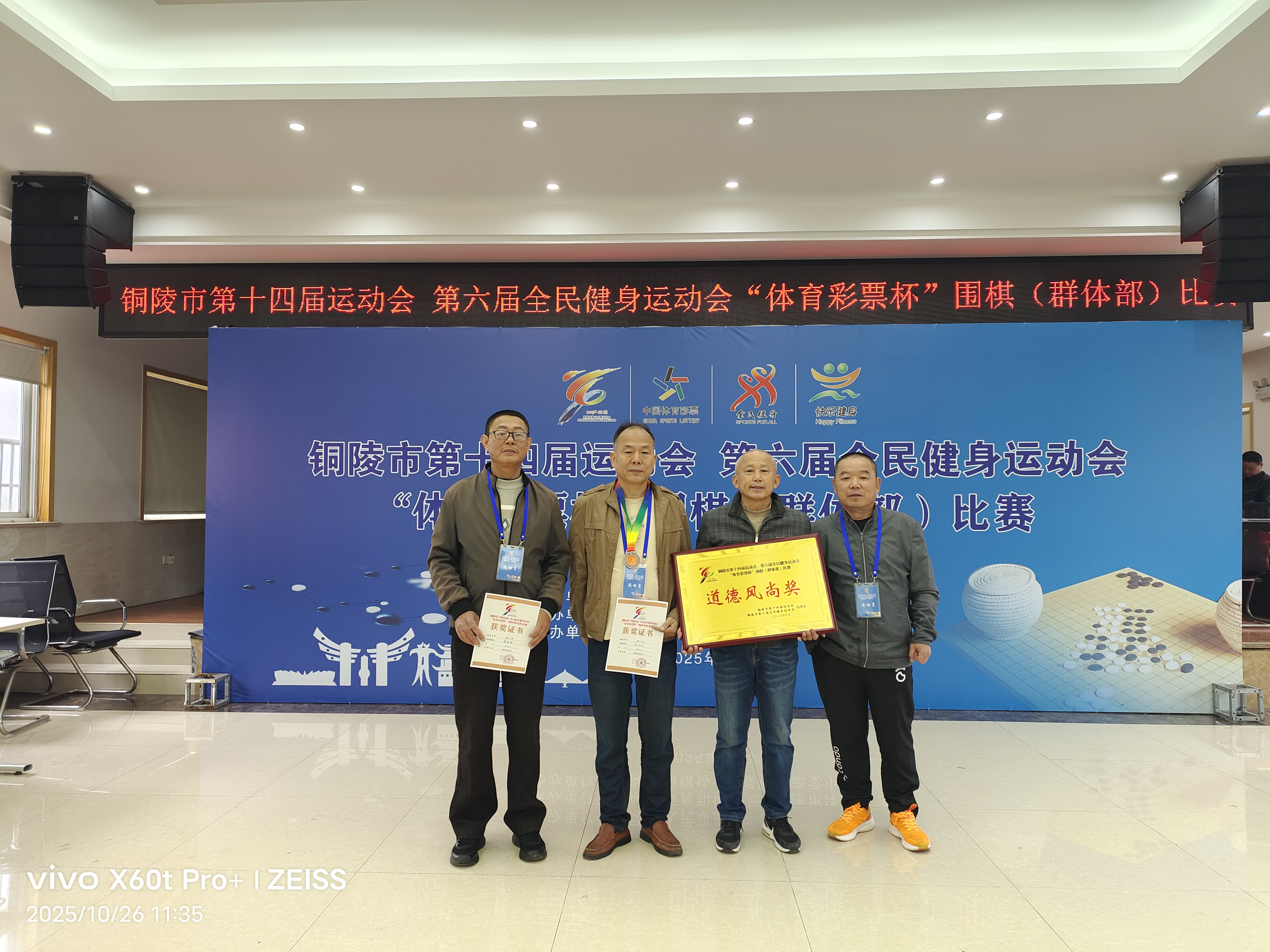 日前,铜陵金钟物资(铜陵市金钟物资经营部)代表队在铜陵市第十四届运动会围棋项目比赛中有三位运动员分别夺得个人第二名、第三名及第七名,取得了非常好的成绩,荣获了大赛组委会颁发的“道德风尚奖”。